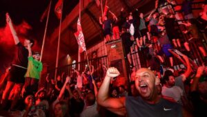 Police officers were seen in the area as fans celebrated but no attempts were made to disperse the good-natured crowd.